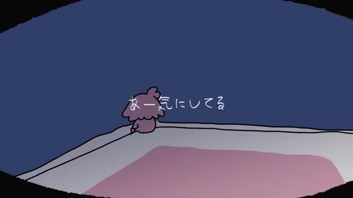 1:37~サビ、ここの映像よすぎる。ぴょんぴょん出たりするの丁寧に描かれていて、タイミングやどこから出るかなどのバランスもちょうど良く気持ちがいい。「あーあ(あーあ)」の歌詞の置く位置やサイズも絶妙。このときにゆっくり落ちるのもコントラストが効いて良い。ちゃんと口パクしてるんだよなあ丁寧。