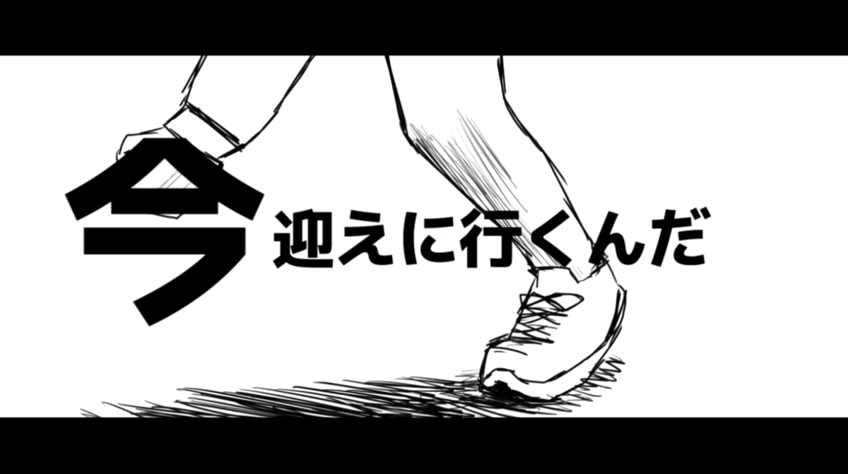 3:06~Bメロ、1番にもあった暗転を含むカット切り替えの多い構成。なんでカオスなのにちゃんとかっこいい絵が多いんだ。歌詞の「そんなんじゃくたばんねぇぞ」の直後に声援というか掛け声が合いの手で入るのですが、そこも力強く拾っている(左画像)。