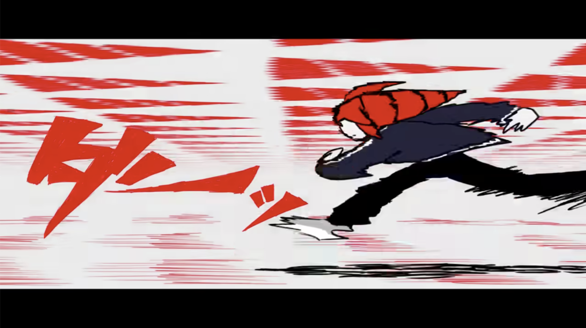 「ダッダッダッダッダーッダッダッ」サビのメロディは終わったが、ここからまた一段とギアを上げていく。イントロと同じメロディに歌詞を載せてさらに駆け抜ける。走りのアニメーションが全力でいい。