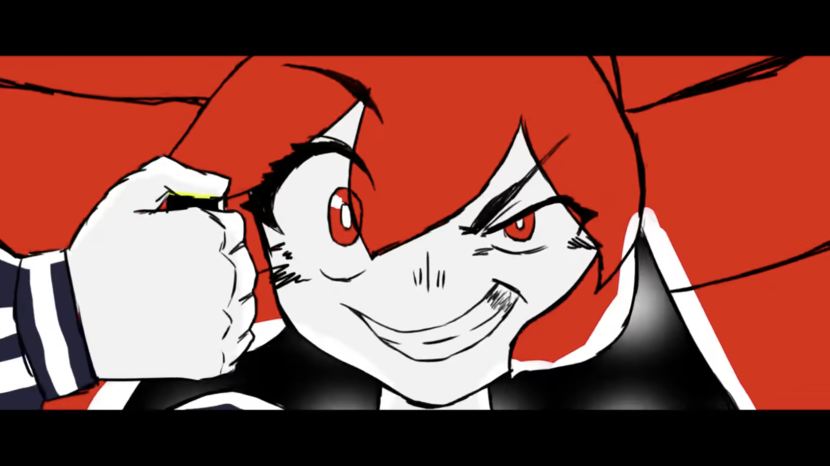 今度は笑顔が縦に跳ねる。歌詞の「跋扈跋扈」の発音も跳ねているようでぴったりだ。この直後の顔が渦を巻き斜めの直線になる表現ハイセンス。