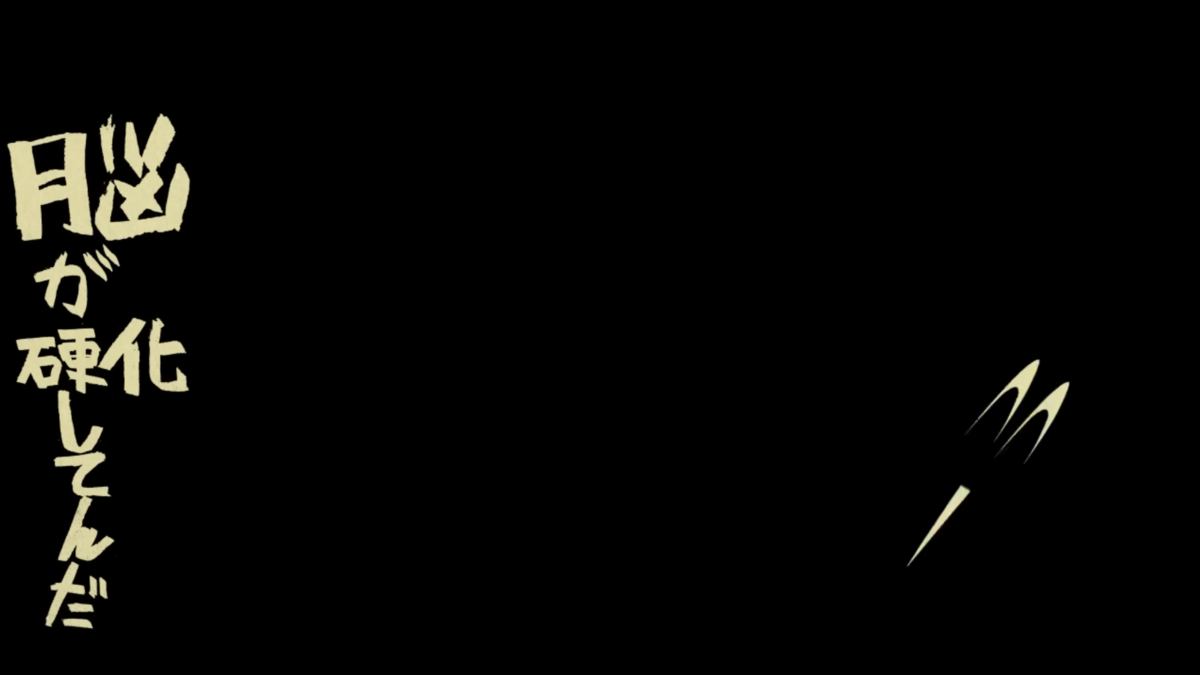 ヂリヂリしたようなレトロな映像表現でイカしてる。一瞬「む」が中央に来るのもなんだかアナログを感じる。動き的勢いが落ち着くのもいい。